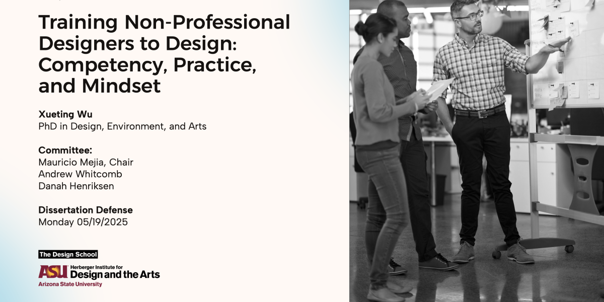 Doctoral candidate Xueting Wu successfully defended her Ph.D. dissertation on Monday, May 19th. Congratulations! Her research made contributions to the research area of design training of non-design professionals. She conducted an interview study with coaches, consultants, and trainers in the industry to understand organizational practices.