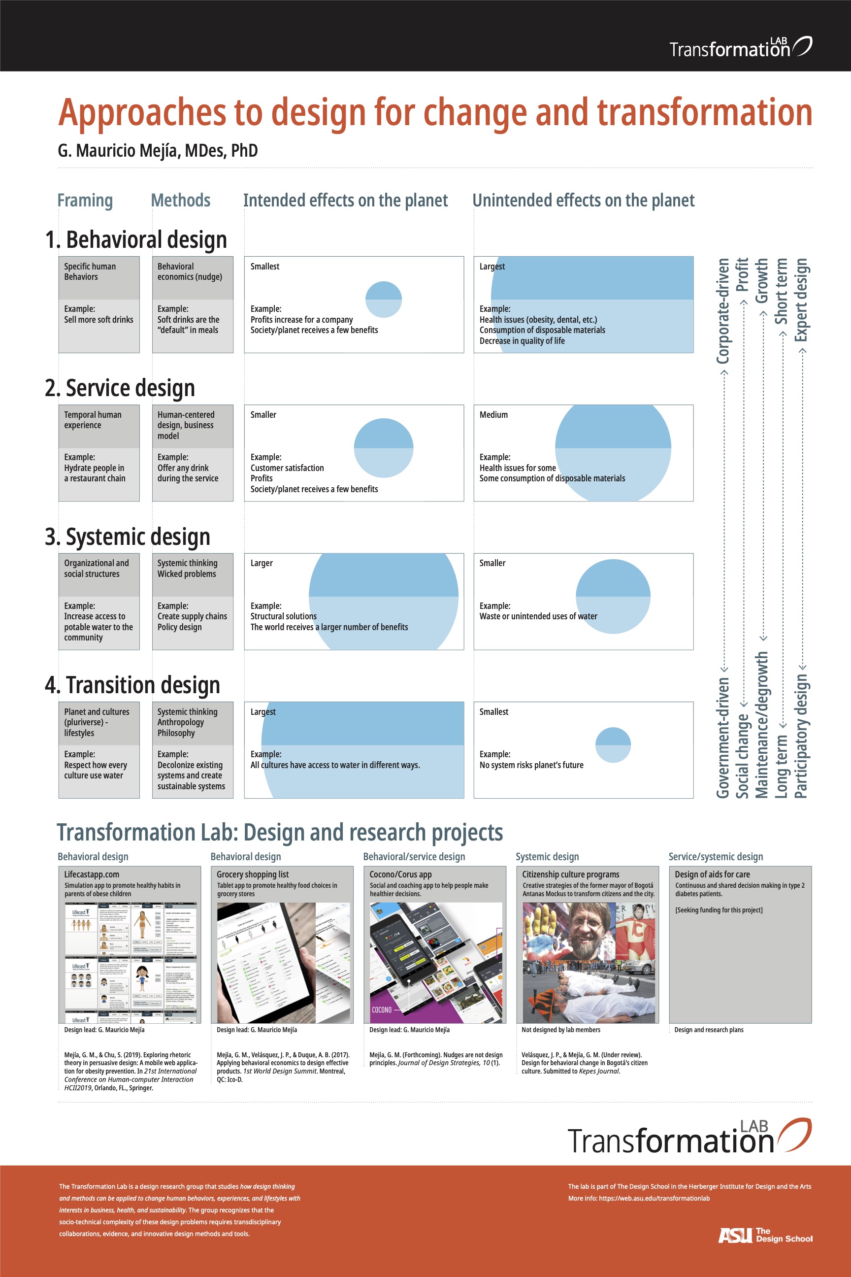 On October 24th, G. Mauricio Mejía will present a poster and display interactive products in the symposium "Agents of Change: Futures of Hope, Futures of Concern" (register here). The event is part of the Planetary Management Symposium series and it is presented by the ASU Global Futures Laboratory. The presentation will be titled "Approaches to design for change/transformation" and it will consist of a comparison between behavioral design, service design, systemic design, and transition design.
