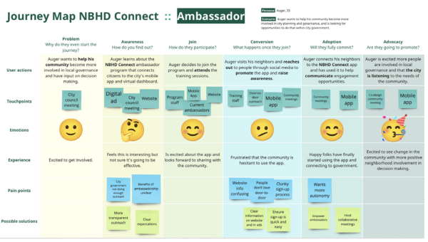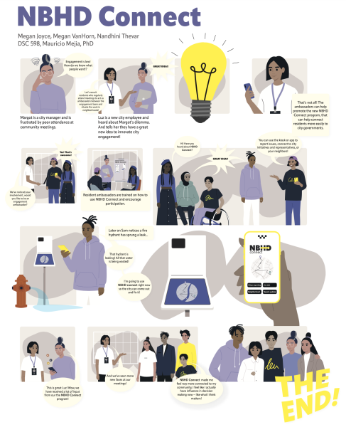 Megan Joyce, Megan Van Horn, and Nandhini Thevar proposed a strategy based on recruiting active residents as city ambassadors who would help to engage other residents. They also proposed an information system that would serve city officers, ambassadors, and residents with various digital touchpoints including kiosks, an app, and administrative access (see images in gallery). - We are writing a grant proposal for the NSF Smart and Connected Communities program. We have had meetings with city officers in Mesa, Gilbert and Scottsdale to further understand resident engagement needs to make Greater Phoenix and smarter region.