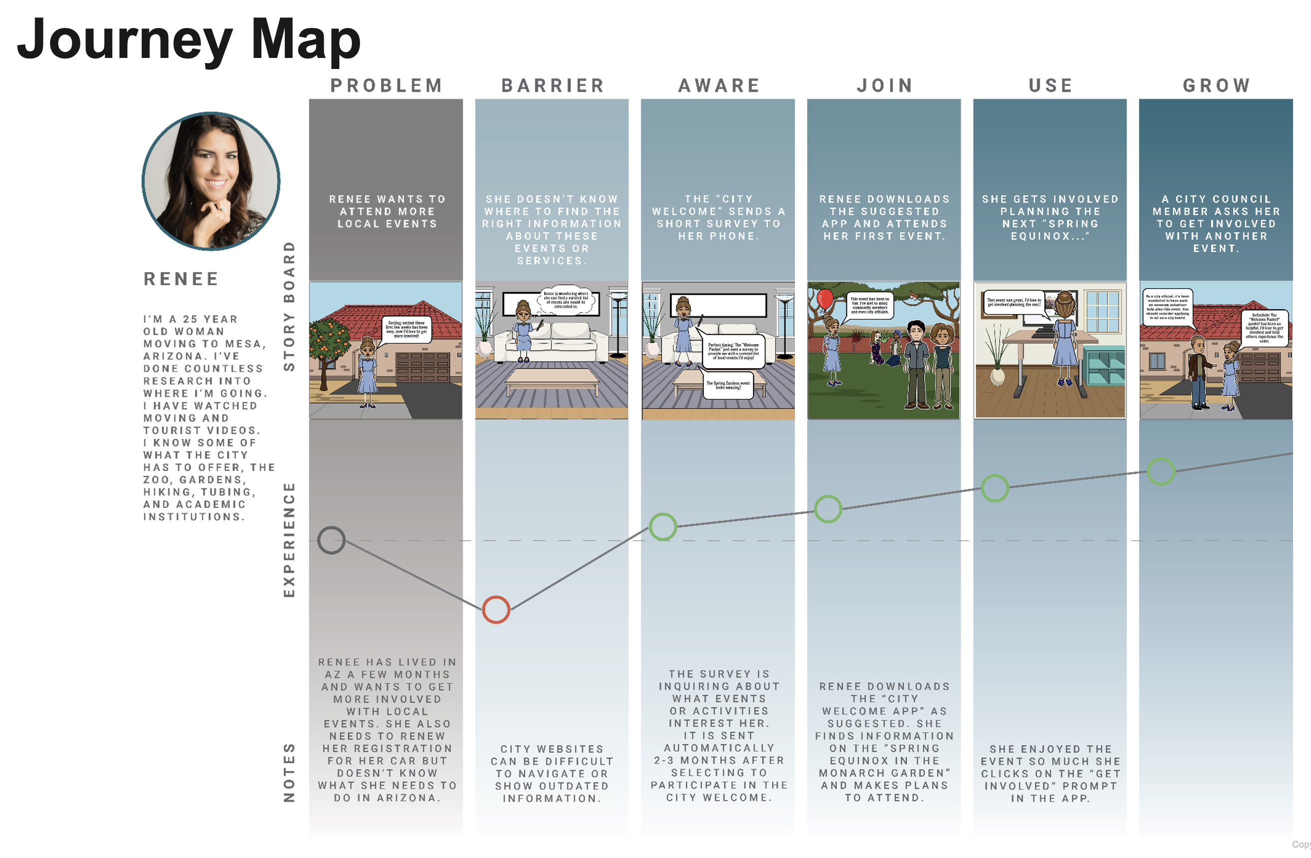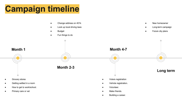 Kendon Jung, Renée Saavedra, and Jared Pratt proposed a strategy focused on engaging new residents adding move-in protocols to renters and homeowners. They also develop a communication timeline to deliver consistent and relevant information to residents (see images in gallery).