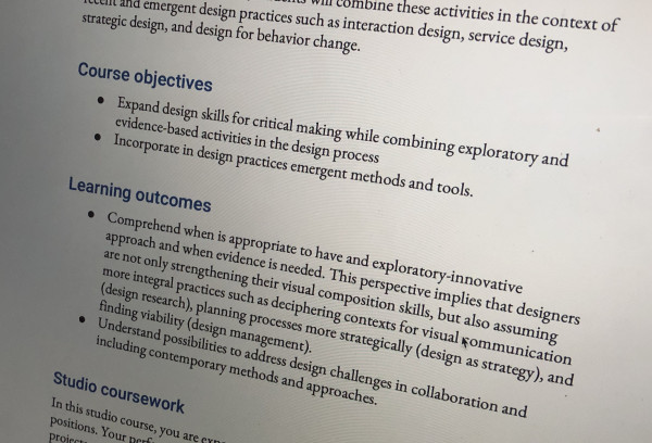 - Mejía, G. M., Xie, X., Simeone, L. & Tomlin, S. (2025). Teaching and learning strategic design skills: A case study of a graduate studio course with a live project. International Journal of Art and Design Education. https://doi.org/10.1111/jade.12525